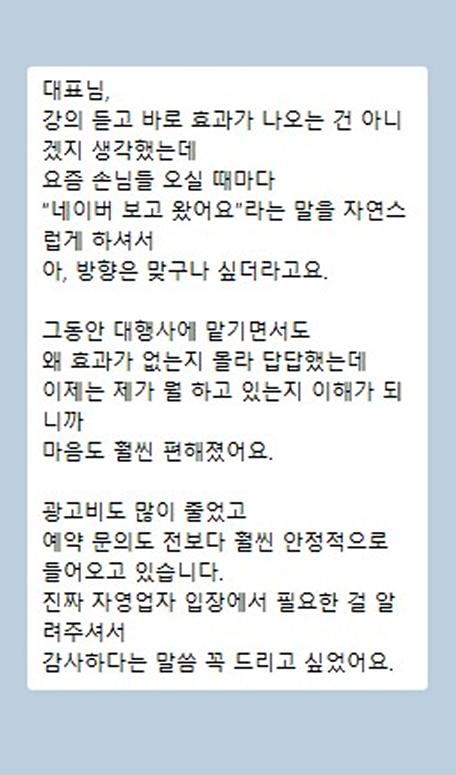 마케팅을 직접하니 대행비용을 70% 아꼈어요!
