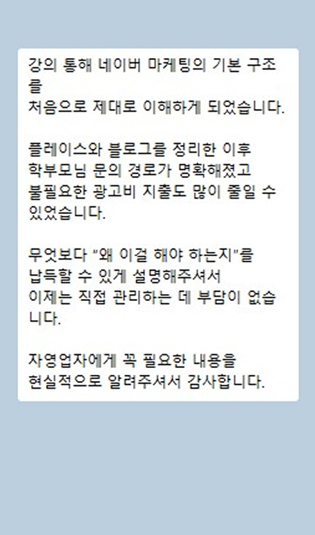 필요 시 네이버 마케팅 관련하여 컨설팅 가능합니다!
